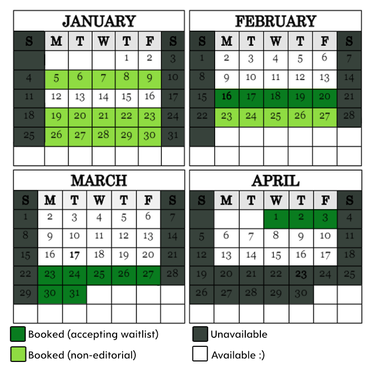 As of 2025, those are the most common editorial tasks in my calendar, but I enjoy variety.